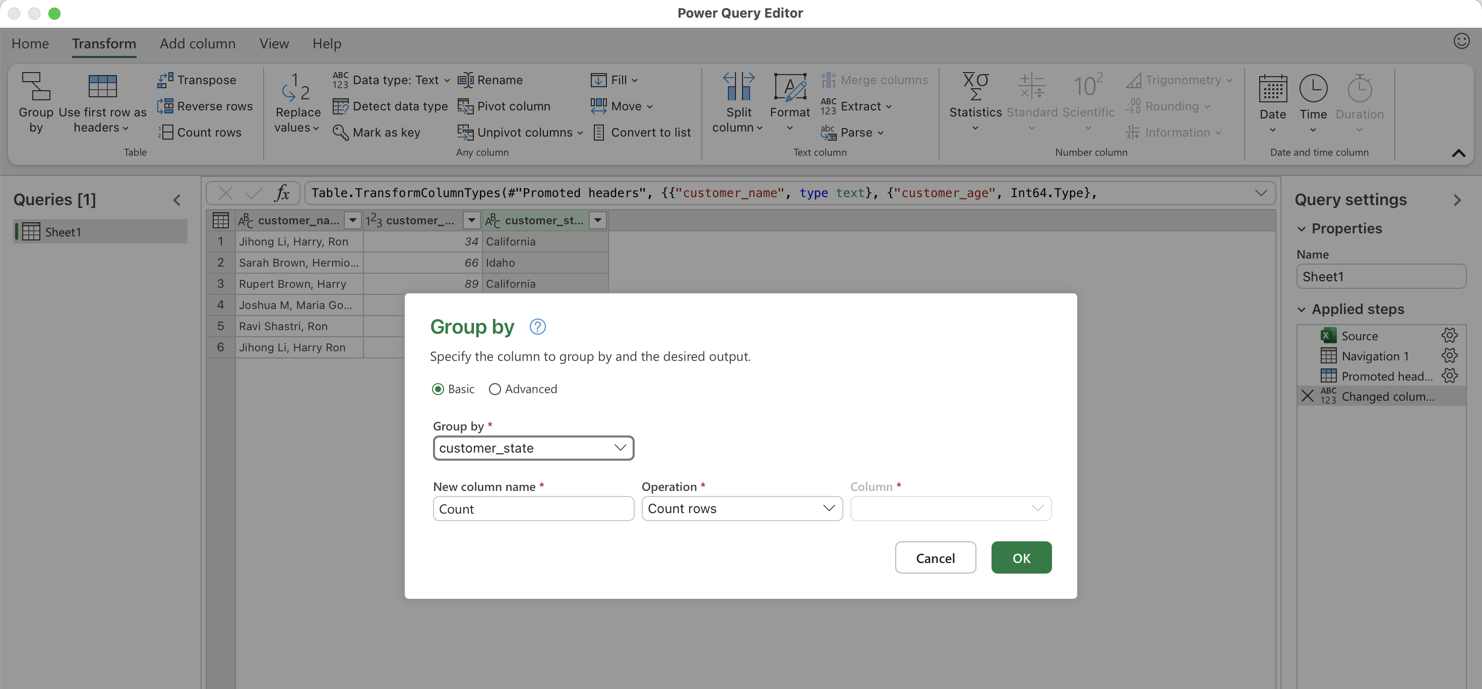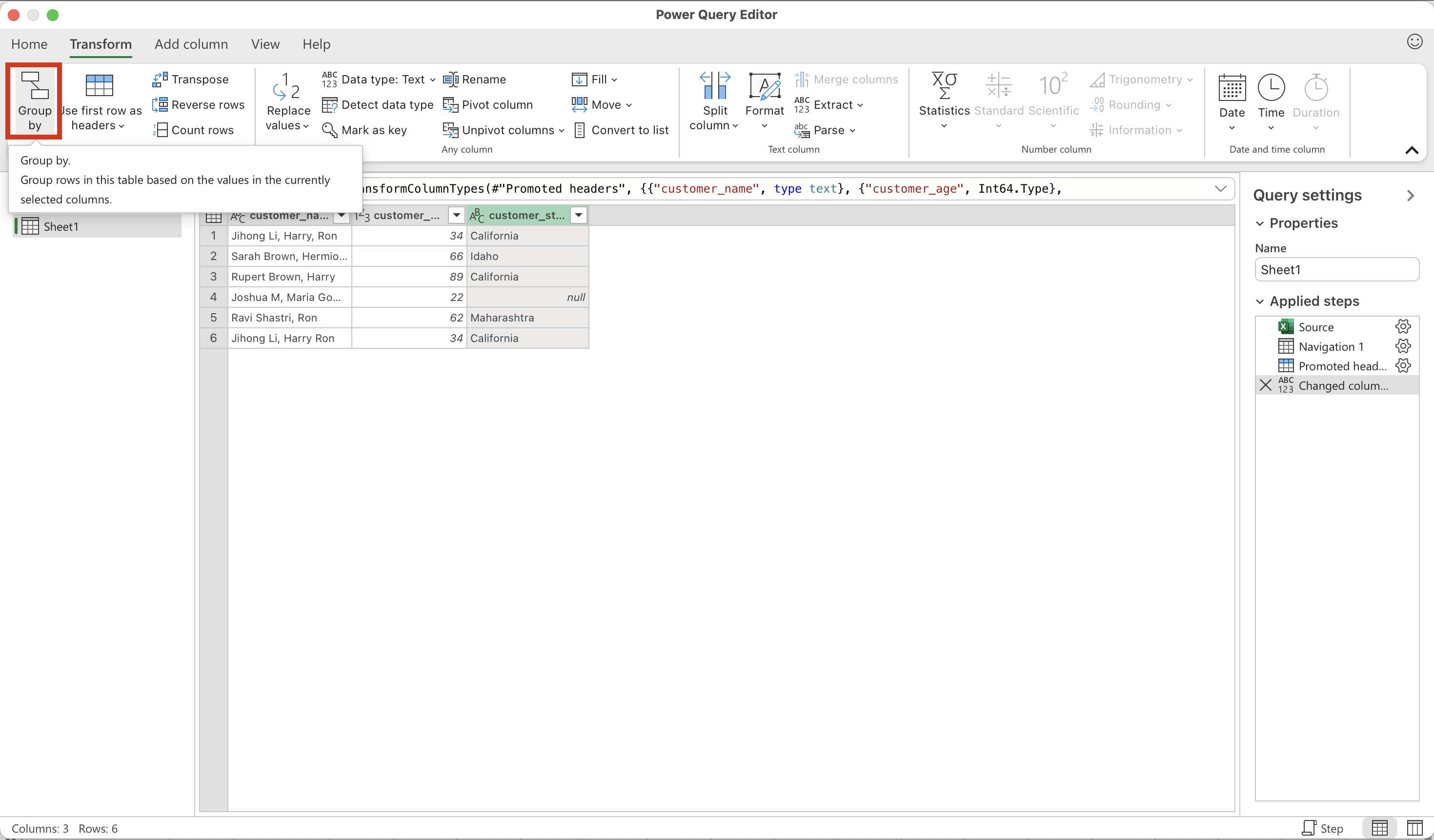 2. Column Transformations: Creates or modifies columns in your table. Example: adding a calculated column, splitting columns, extracting values from a column.