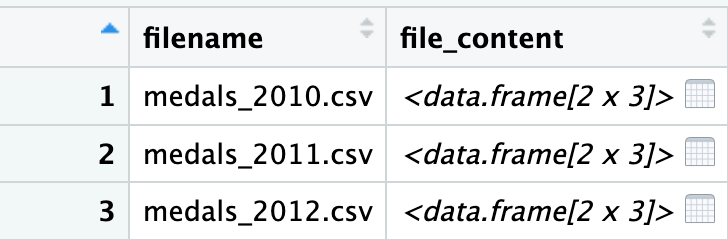 ) |> write_csv('medals_2012.csv')Now that we have the files we will start with the filenames in a dataframe.