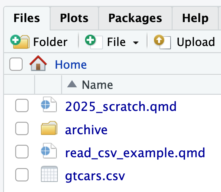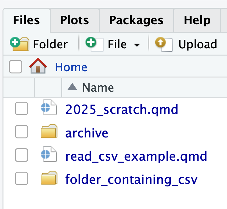 Ensure you are working in a qmd file located in the home folder (so your qmd and the csv file are in the same place on the server).
