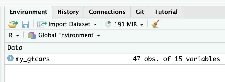 Download the file to your laptop, being sure to remember where you save the file on your laptop. Use a right-click on this link gtcars.csv.