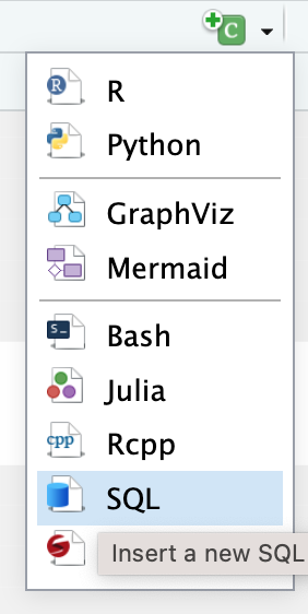 You can also use the SQL cell insertion drop down in Studio, but this puts the option in a different place; you will have to type con