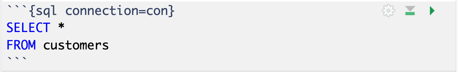 SQL queries will be executed in SQL cells. We also need to specify the connection (con